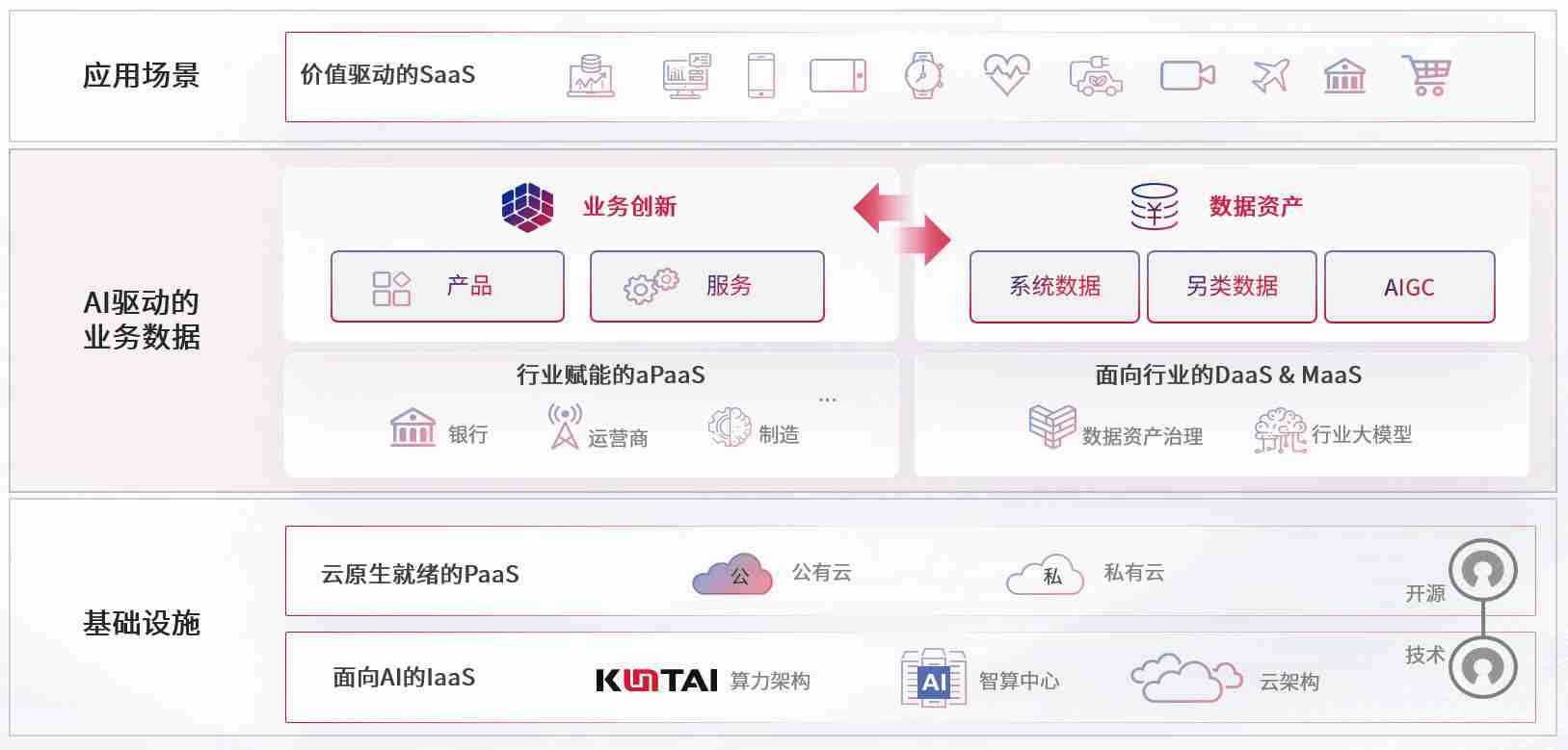 数字时代,,围绕企业数字化转型的关键要素,,,,J9.COM数码开创性的提出数云融合战略和技术体系框架,,,,着力在云原生、、数字原生、、、AI原生和信创产业上架构产品和服务能力,,,为处在不同数字化转型阶段的快消零售、、、汽车、、、金融、、、、医疗、、政企、、、教育、、运营商等行业客户提供泛在的敏捷IT能力和融合的数据驱动能力,,,构建跨界融合创新的数字业务场景和新业务模式,,助力企业级客户建立面向未来的核心能力和竞争优势,,,全面推动社会的数字化、、、智能化转型升级。。。。